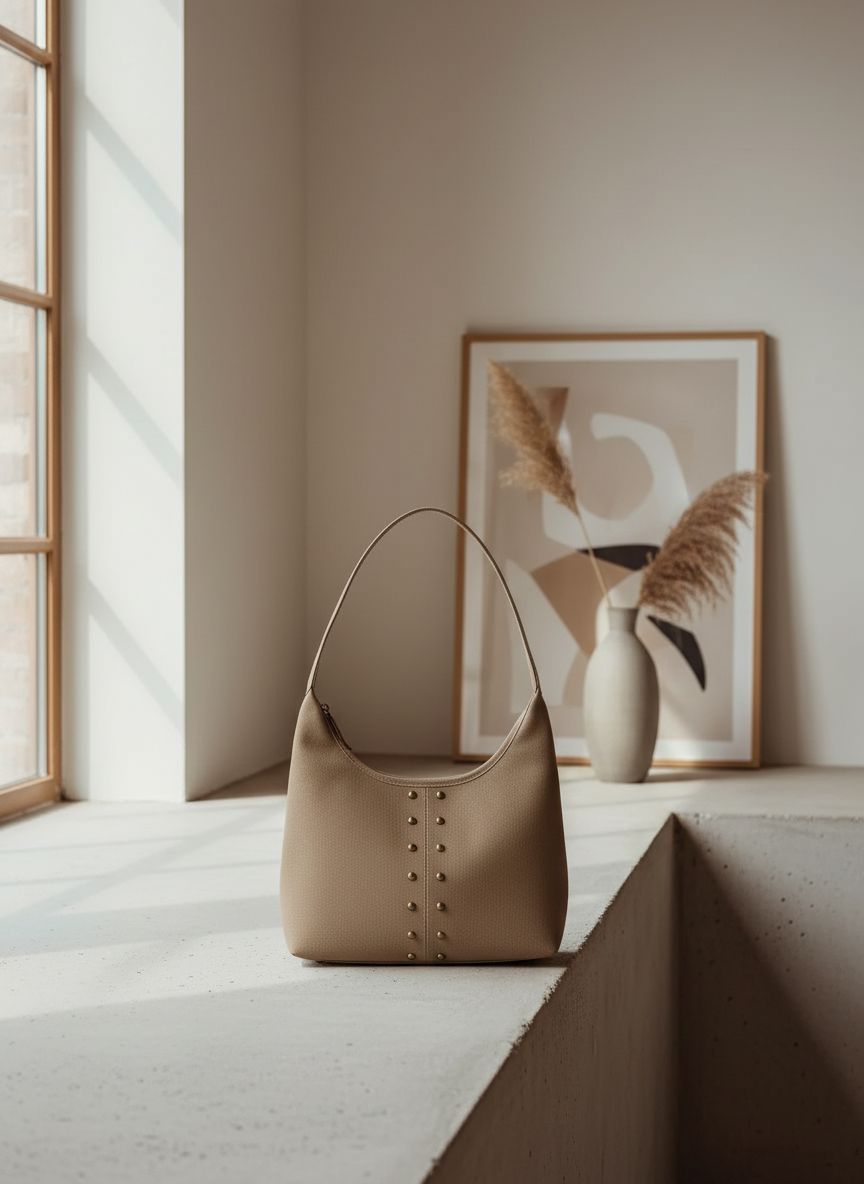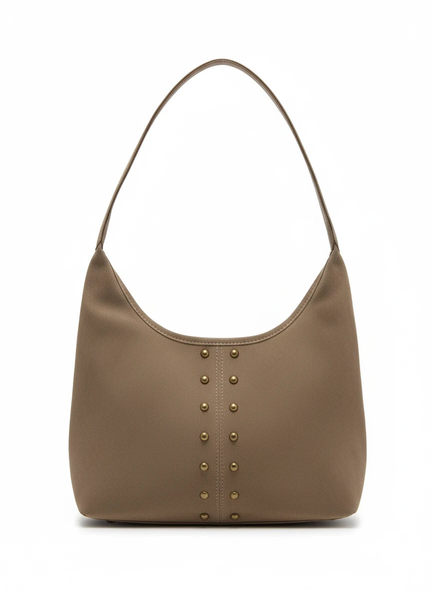 Amara Süet Gold Zımba Detaylı Omuz Çanta- Vizon