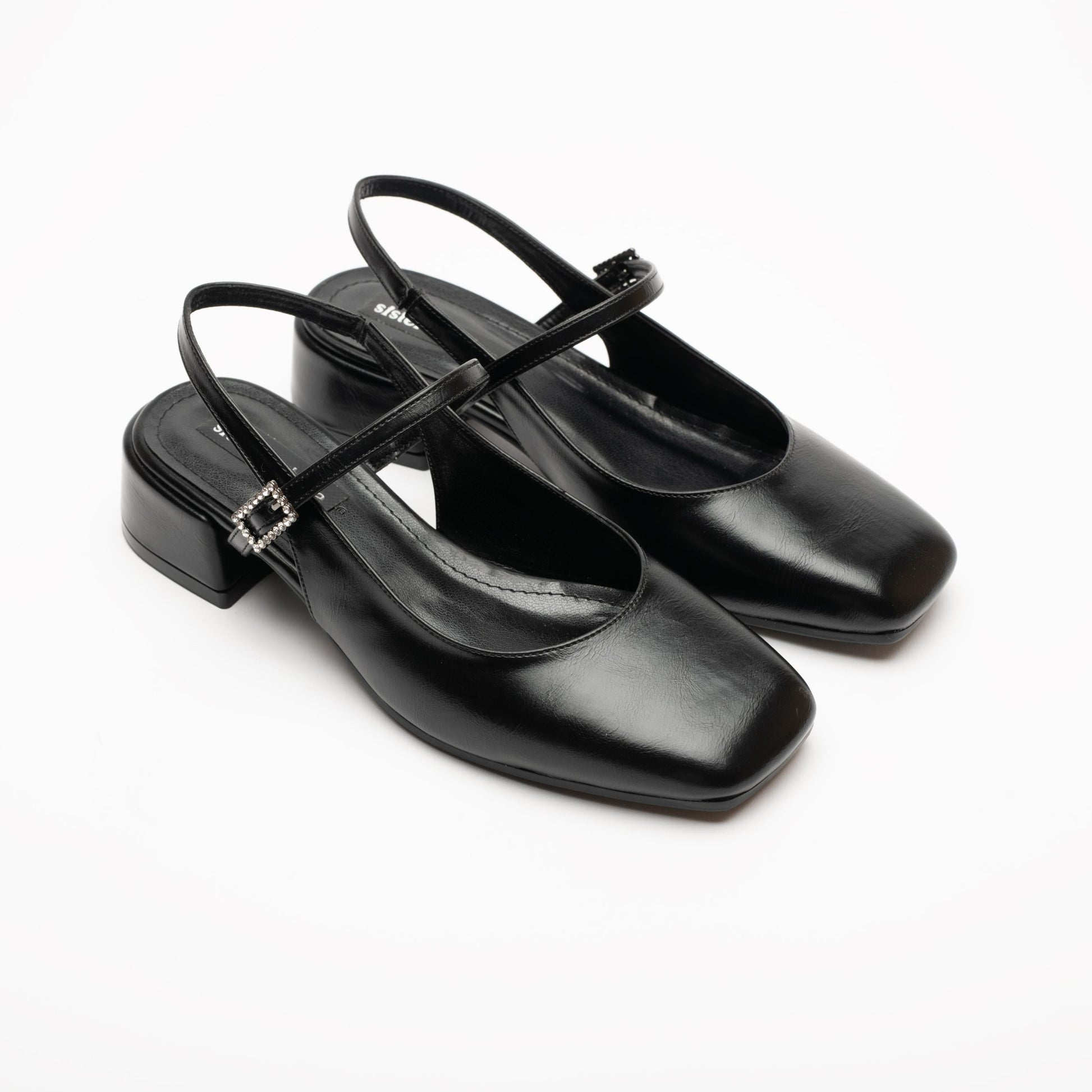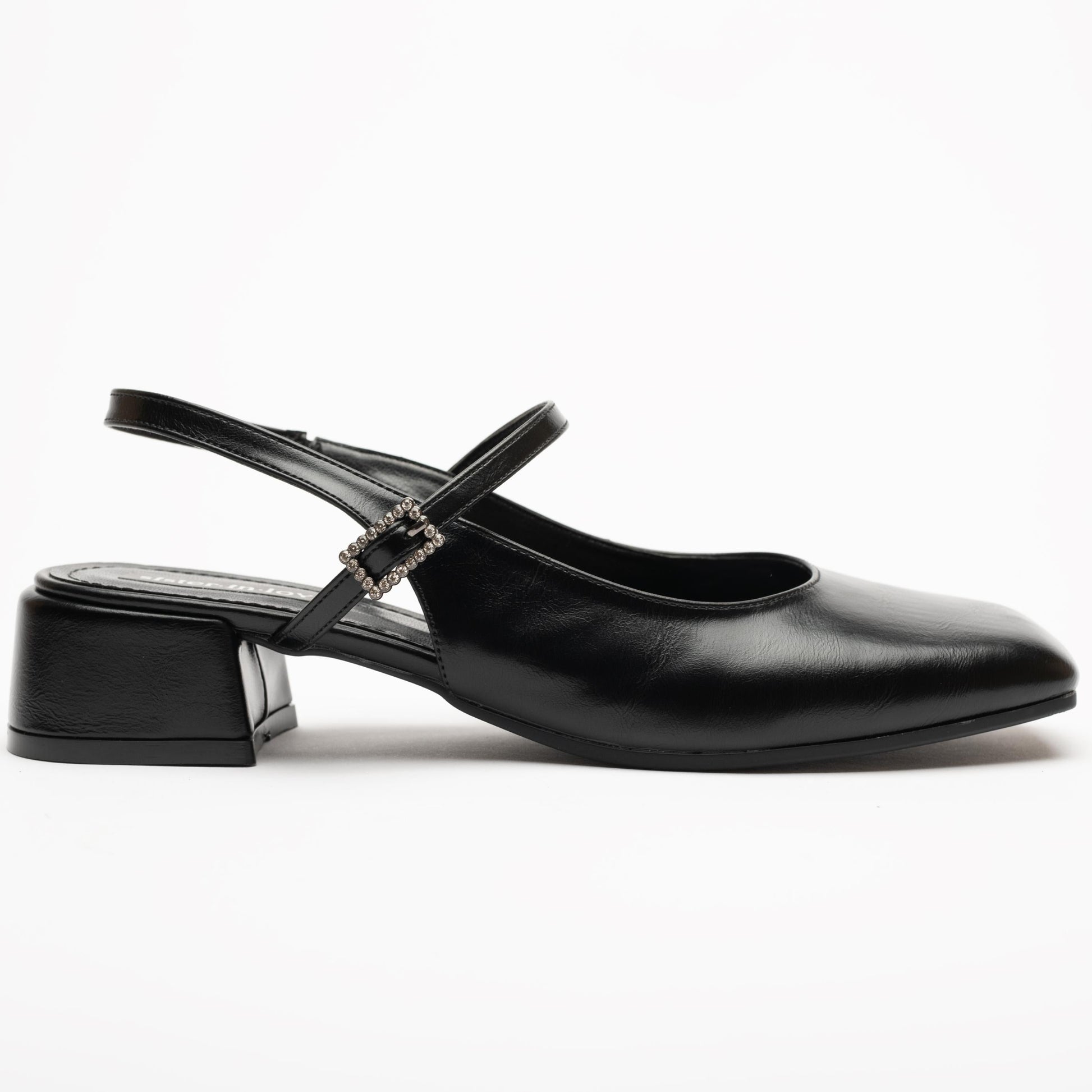 Zeta Siyah Bantlı Taş Detaylı Arkası Açık Vegan Deri Babet – Işıltılı ve Zarif Adımlar!